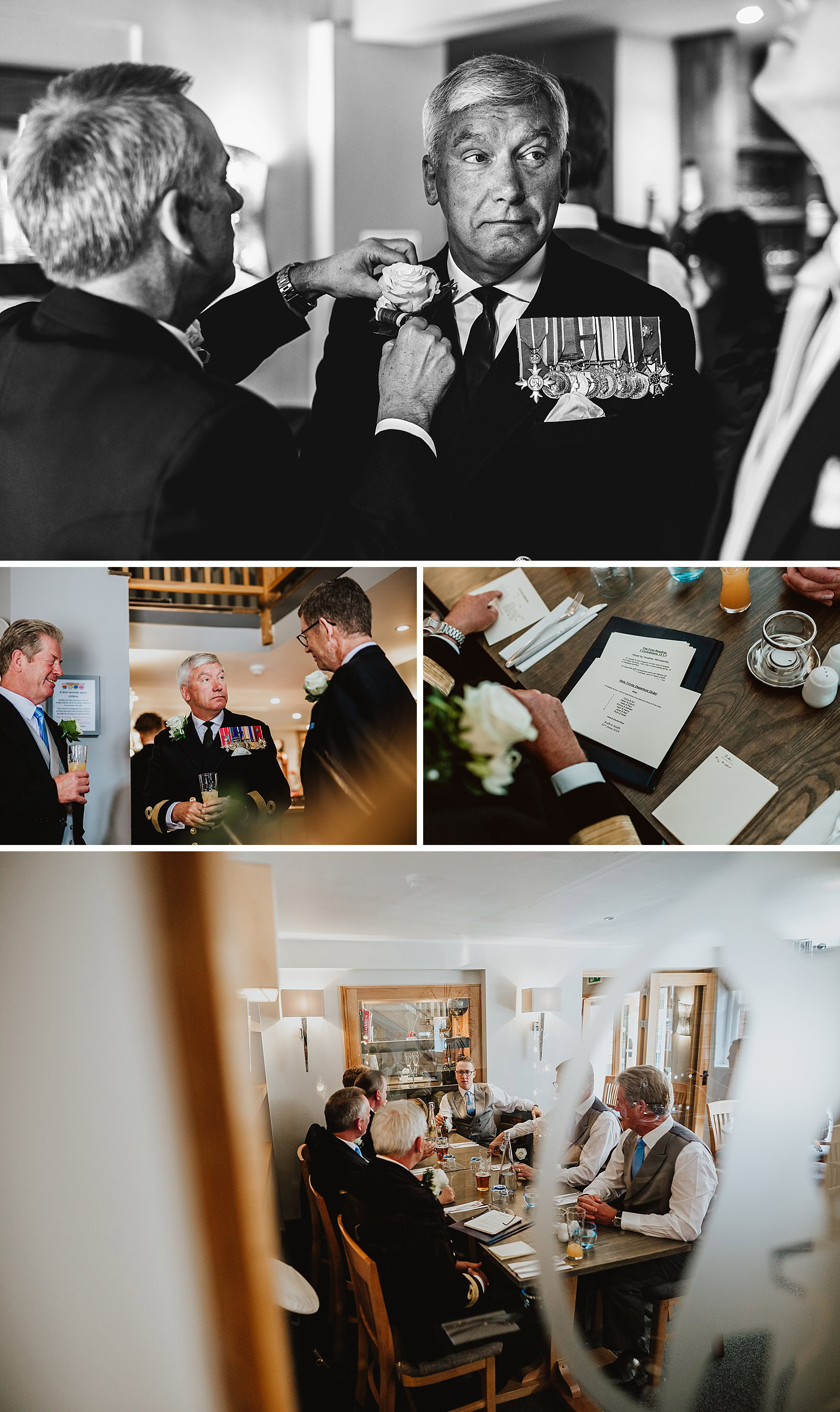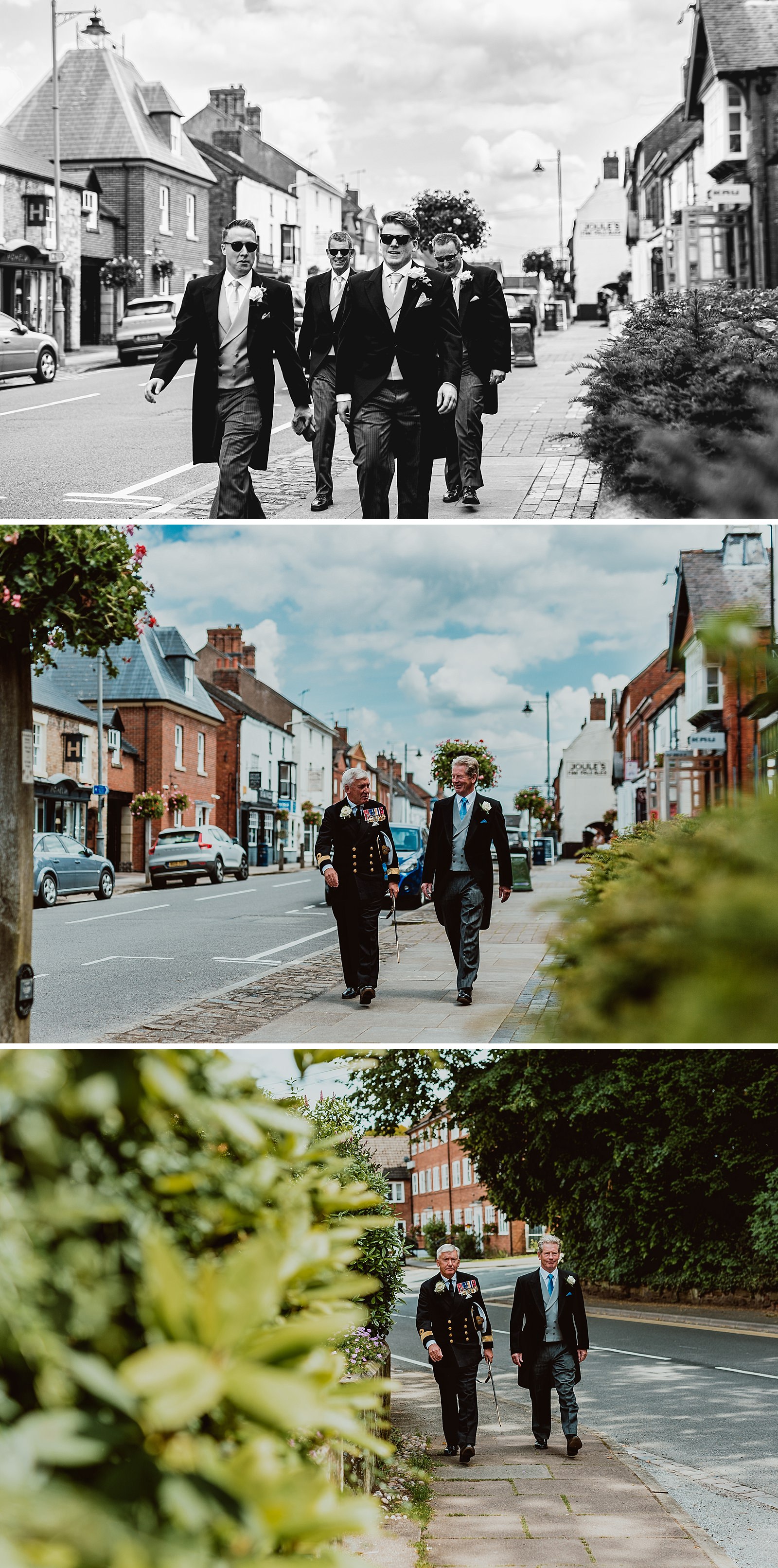 At 12, it was a walk down the high street to the Old Smithy pub to greet the men and some snaps of Keith getting ready, enjoying a pre-wedding drink! It was an idea of theirs to get a shot of Keith (decked out in his full Navel suit complete with medals) and his groomsmen walking down the Eccleshall High Street.. well, consider that shot nailed! you can see it below in the selection of Photos!