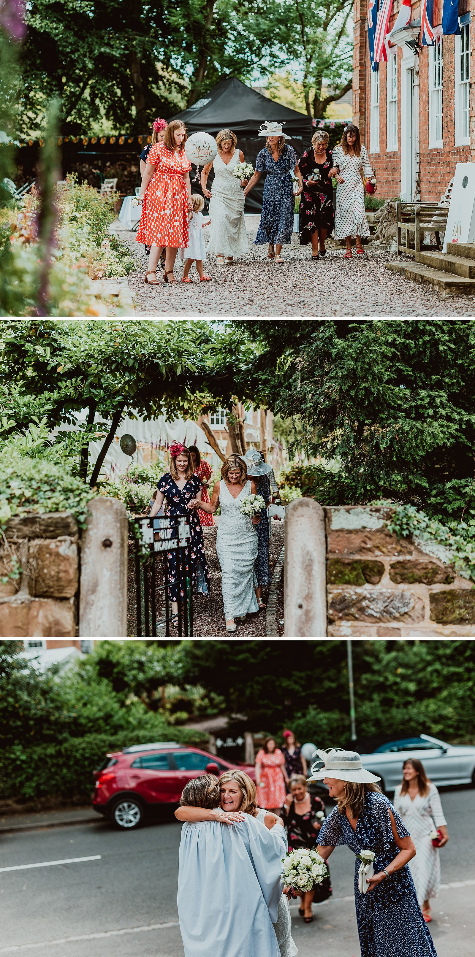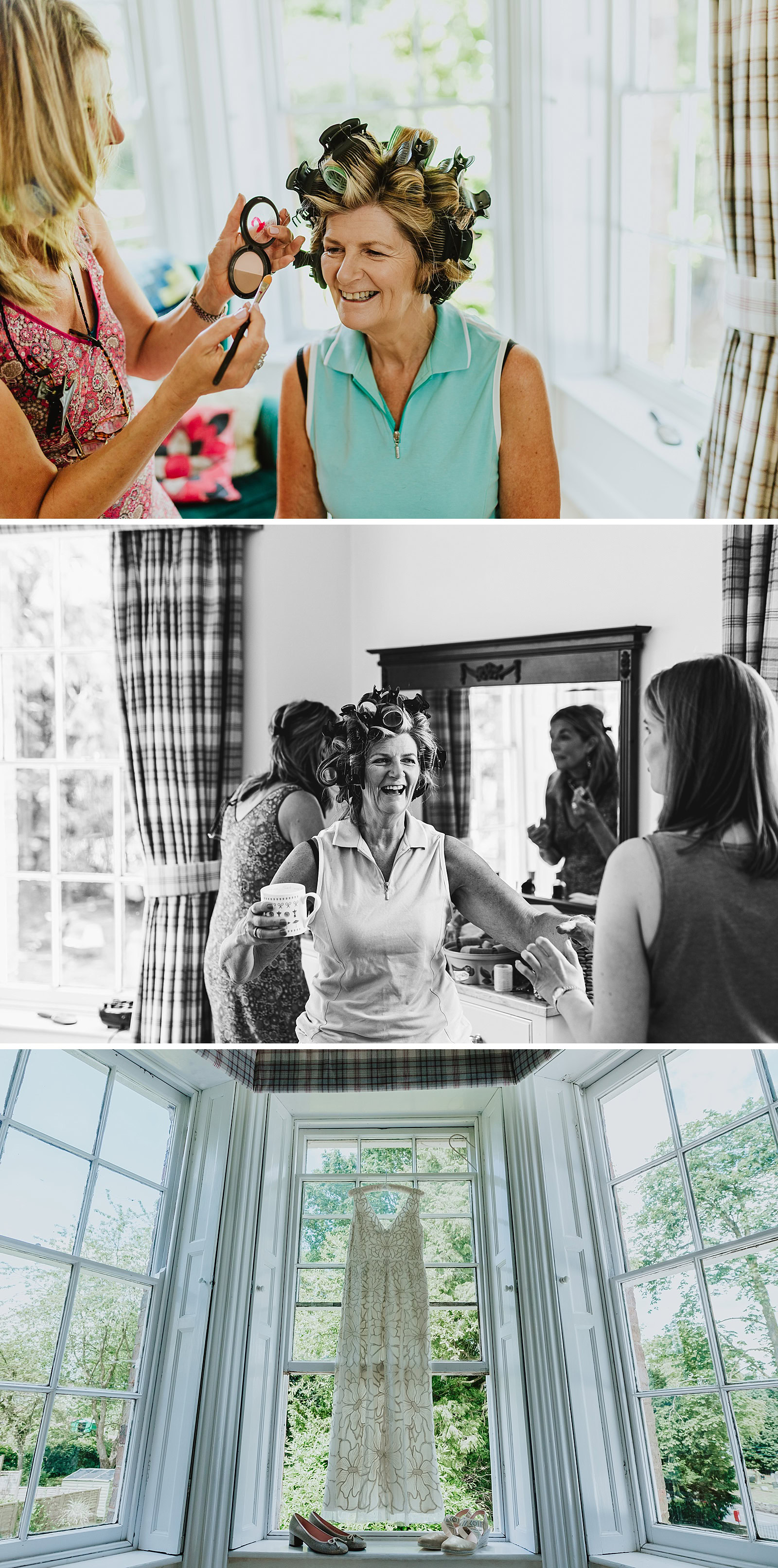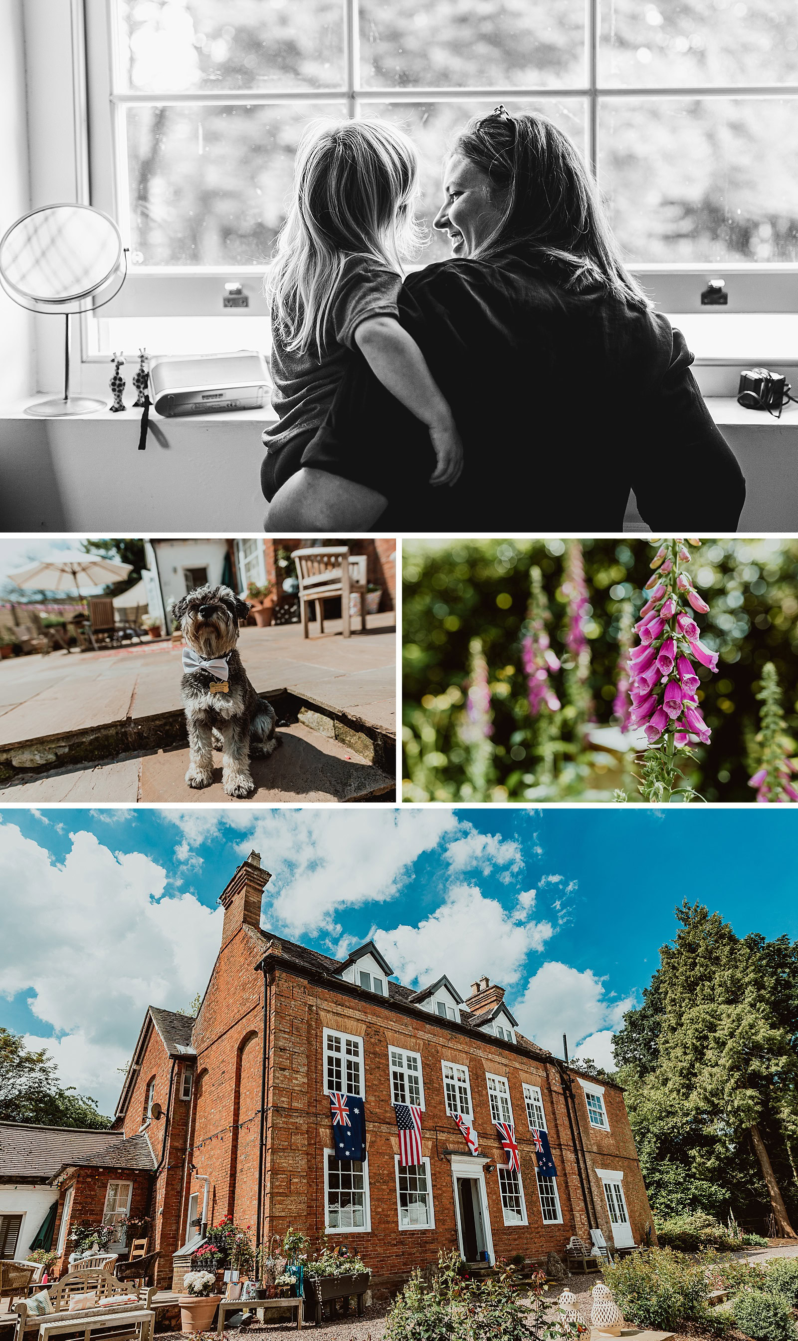 After poor weather in the weeks leading up to the big day, it arrived with clear blue skies with warm sun shining right over Eccleshall. I arrived bright and early for some shots of of the church and garden with family already relaxing in the sun outside. Ruth and her bridal team were already getting prepped, sipping bubbly and singing along to music. It was a delight to be able to see the church they would be married in later that day from the bedroom window, tall foxgloves covering the garden, what a perfect setting.